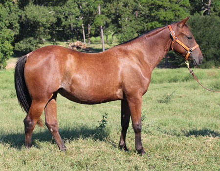 Cute bay filly that has a pretty way of moving and sure to be an athlete. With her genetics, she can go multiple ways in the performance arena: ranch versatility, cowhorse, cutting, roping, barrels, etc.