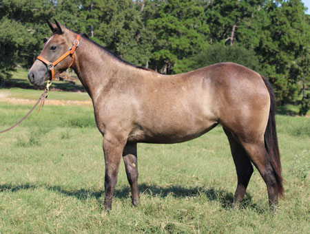 Attractive gray filly by AQHA High Point Breakaway Horse, Cee Bueno. Her dam, Wild Desires, is by AQHA World Champion sire, Cats Rocket; and out of Suns Frosty, AQHA High Point cutting horse.